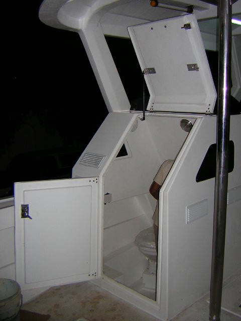 Toilet: 1. Electrical toilet. 2. Sink and vanity 3. GRP shower base 4. Non skid floor. 5. Shower spray (bathroom) 6. Waste water tank + pump & fittings 7. Light.